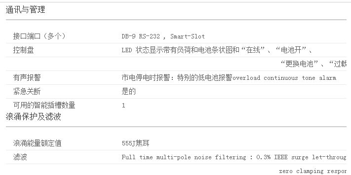 架式/塔式轉(zhuǎn)換當(dāng)從塔式遷移到機(jī)柜式安裝環(huán)境時(shí)保護(hù)對UPS的初始投資即插即用外部電池向UPS增加額外的運(yùn)行時(shí)間時(shí),保證負(fù)載干凈、不間斷的供電閃存可升級固件使用FTP遠(yuǎn)程安裝固件的修訂版。