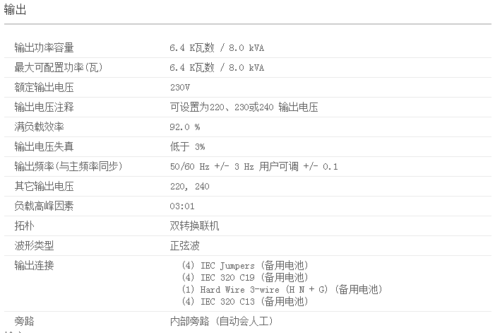 可擴展的運行時間需要時允許快速增加更多的運行時間自動內部旁路在UPS電源出現過載或故障的情況下向所連接的負載提供公用電源。智能電池管理通過智能、準確的充電技術獲得電池性能、壽命和可靠性。熱插拔電池在更換電池的整個過程中,確保干凈、不間斷電源以保護設備經UPS關機后自動重啟負載一旦市電恢復,則自動重新啟動所連接的設備。溫度補償電池充電根據實際的電池溫度調整充電電壓延長電池壽命