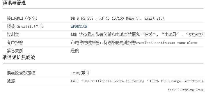 架式/塔式轉換當從塔式遷移到機柜式安裝環境時保護對UPS的初始投資即插即用外部電池向UPS增加額外的運行時間時,保證負載干凈、不間斷的供電閃存可升級固件使用FTP遠程安裝固件的修訂版。