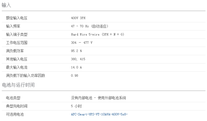 并聯電池模塊通過冗余電池提供更高的可用性自動內部旁路在UPS電源出現過載或故障的情況下向所連接的負載提供公用電源。兼容發電機使用發電機電源時,確保干凈、不間斷電源以保護設備熱插拔電池在更換電池的整個過程中,確保干凈、不間斷電源以保護設備可擴展的運行時間需要時允許快速增加更多的運行時間雙電源輸入將UPS連接到兩個獨立的電源中,增加了可靠性。