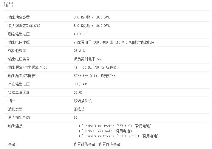 輸入功率因數校正通過使用小型發電機和電線連接,使安裝費用少網絡管理通過網絡實現對于UPS的遠程電源管理。手動維護旁路不需要安裝外部機械旁路,可降低安裝成本。雙電源輸入將UPS連接到兩個獨立的電源中,增加了可靠性。可擴展的運行時間需要時允許快速增加更多的運行時間熱插拔電池在更換電池的整個過程中,確保干凈、不間斷電源以保護設備