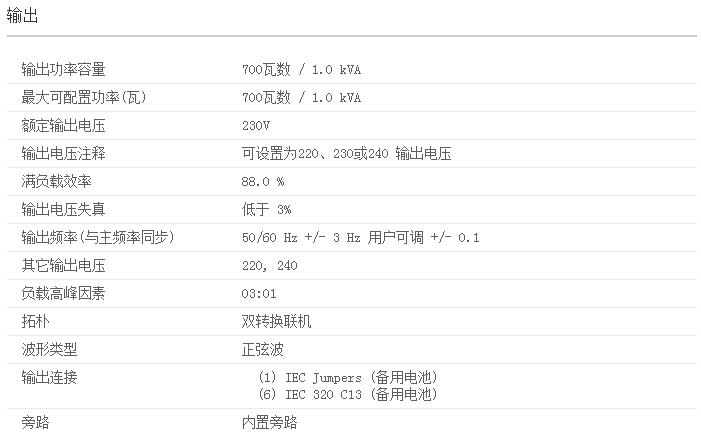 可擴展的運行時間需要時允許快速增加更多的運行時間自動內(nèi)部旁路在UPS電源出現(xiàn)過載或故障的情況下向所連接的負載提供公用電源。智能電池管理通過智能、準確的充電技術(shù)獲得的電池性能、壽命和可靠性。熱插拔電池在更換電池的整個過程中,確保干凈、不間斷電源以保護設(shè)備經(jīng)UPS關(guān)機后自動重啟負載一旦市電恢復,則自動重新啟動所連接的設(shè)備。溫度補償電池充電根據(jù)實際的電池溫度調(diào)整充電電壓延長電池壽命
